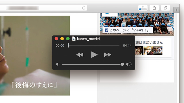 3.ダウンロード完了後、QuickTime Playerが表示されます。再生ボタンをクリックして動画をご覧ください。