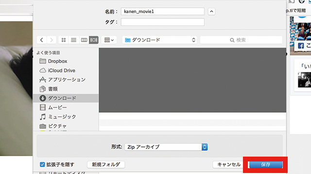 2.ダウンロードウィンドウが表示されます。右下の「保存」ボタンをクリックしてください。