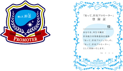 知って、肝炎プロモーターに登録されるとワッペン、登録証をお渡しいたします。