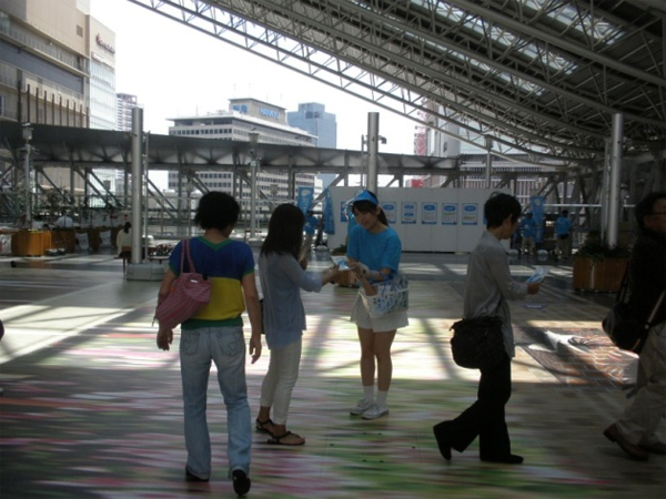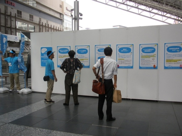 またあいにく場所の関係上、サンプリング配布場所とは離れたところでのパネル展示となってしまいましたため、東京に比べて見て頂ける方が少なくなってしまいましたが、それだけに熱心に見られる方も多く、スタッフと話し込む姿もお見受けいたしました。大阪の浪速っ子魂をスタッフ一同いただいて無事イベントを成功させることができました。皆様の熱いご支援心より感謝申し上げます。