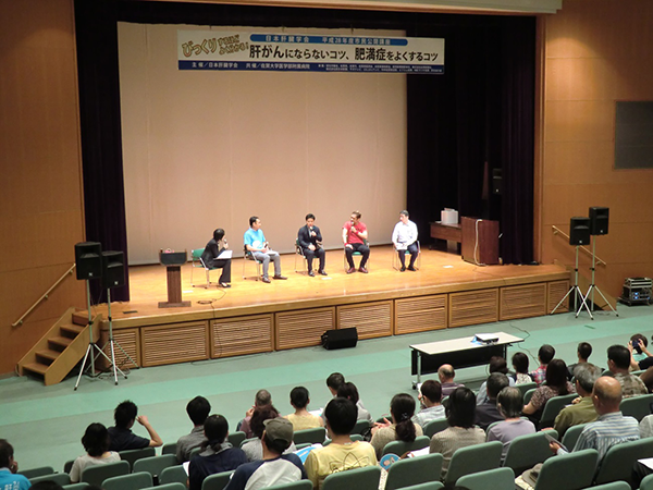 2016年7月31日(水)佐賀県にて行われた市民講座「びっくりするほどよく分かる!肝がんにならないコツ、肥満症をよくするコツ!」が開催され、知って肝炎 スペシャルサポーターのスポーツキャスター/ 清水宏保氏・お笑いタレントのはなわ氏がトークショーに登壇。