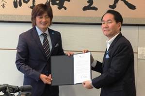 厚生労働省「知って、肝炎プロジェクト」のスペシャルサポーターを務めるサッカー元日本代表の岩本輝雄氏が香川県庁を表敬訪問し、肝炎ウイルス検査の受検、肝炎の早期発見・早期治療を呼び掛けました。