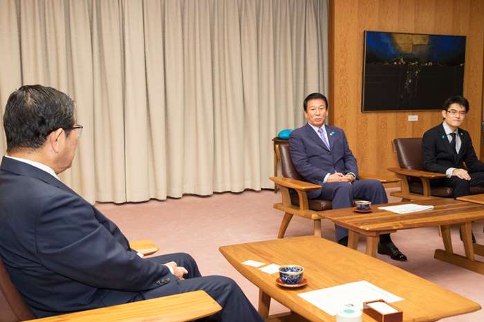 この度、厚生労働省 肝炎対策国民運動「知って、肝炎プロジェクト」の特別参与 杉 良太郎氏は、10月24(火)に岐阜県へ表敬訪問し啓発活動を行いました。