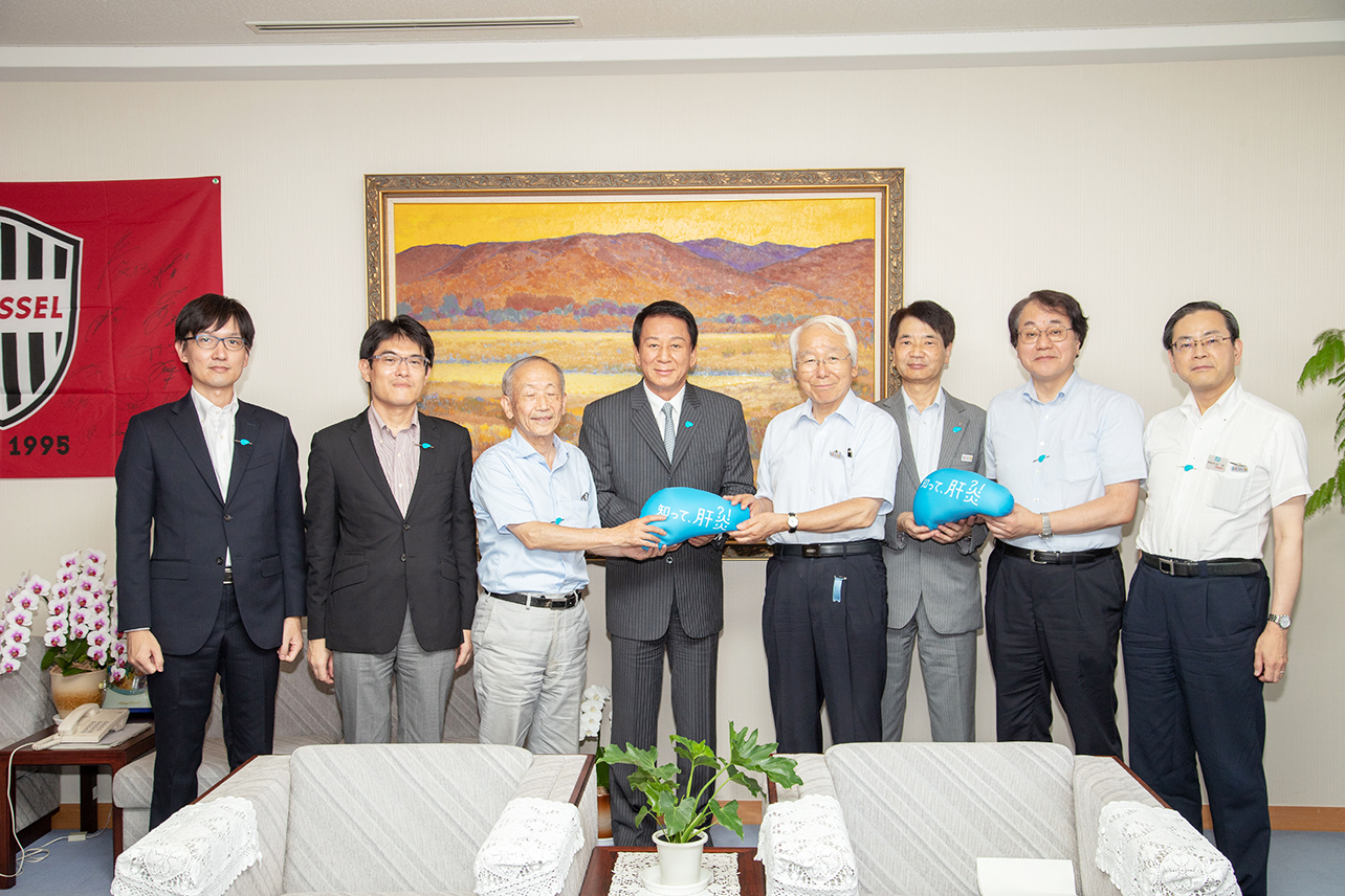この度、厚生労働省 肝炎対策国民運動「知って、肝炎プロジェクト」は、特別参与 杉 良太郎氏が7月18日(水)に兵庫県を表敬訪問し肝炎に関する啓発活動を行いました。
