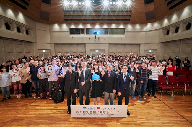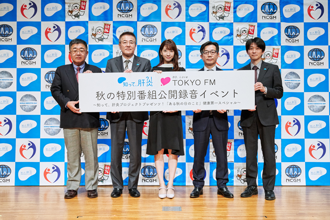 2019年11月2日(土)に「知って、肝炎プロジェクト×TOKYO FM 秋の特別番組公開録音イベント 〜知って、肝炎プロジェクトプレゼンツ!「ある秋の日のこと」健康第一スペシャル〜」を開催いたしました。本イベントでは、スペシャルサポーター AKB48グループより柏木 由紀さんが登壇し、公募抽選によって集まった一般の方約150名に向け、肝炎ウイルス検査の重要性を呼びかけました。