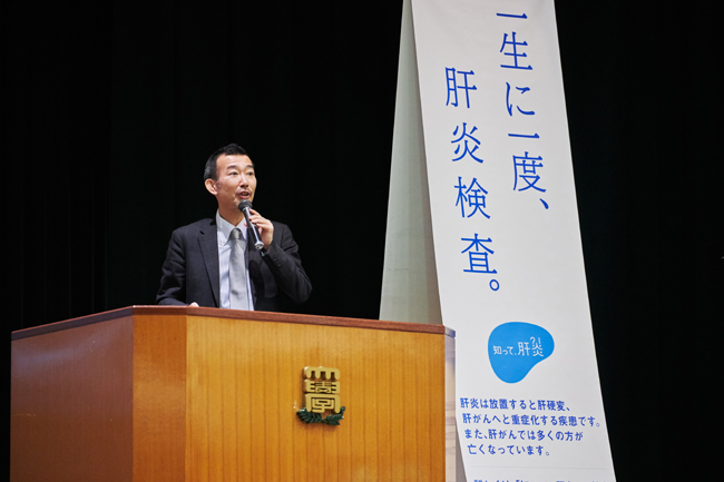 遠藤准教授より、B型肝炎・C型肝炎の病状や治療法についてや、肝炎という病気についてご講演いただきました。