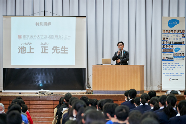 東京医科大学茨城医療センター 池上 正先生による、肝炎の知識に関する特別授業が行われました。