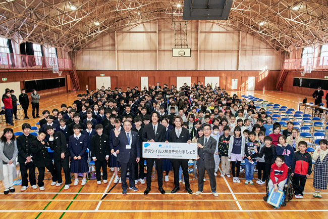 阿見町立阿見小学校にて、阿見小学校5・6年生、阿見中学校1年生を対象にした、肝炎の特別授業を開催いたしました。