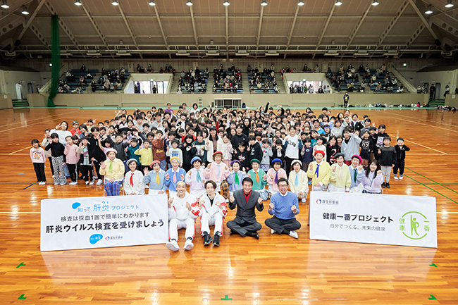 ダンスを通じて体を動かすことの大切さを伝えようと企画された『杉良太郎presents EXILEとダンスDANCEダンス~健康になろう~』が和歌山市で4月2日(土)に開催され、知って、肝炎プロジェクトから杉健康行政特別参与、健康クリエイターのEXILE TETSUYA氏の他、サプライズゲストとしてEXILE 関口メンディー氏が出演し、市内の小・中学生約300名と一緒にダンスを楽しみました。