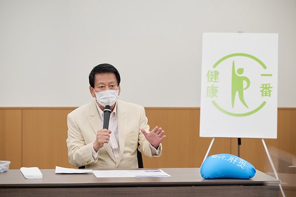 杉氏は「2019年に青森県庁を訪れ、肝炎をどうしたら撲滅できるのかなど、知事や専門医と肝炎対策を行いました。現在では、C型肝炎は、飲み薬でほとんど完治できる薬があります。肝臓は”沈黙の臓器”と言われ、自覚症状がほとんどありません。症状が出ていないから検査に行く必要がないと思ってしまう。それが肝炎の大きな落とし穴です。(感染していることに気がつかず)放置していると肝硬変や肝がんに進行してしまう、恐ろしい病気です。だからこそ、先ずは検査を受けてほしい。」と肝炎ウイルス検査の受検の大切さを訴えました。