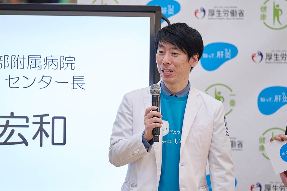 また、治療について今泉氏は「肝炎ウイルス検査で、ウイルスの感染を早期発見できれば、C型肝炎は飲み薬で完治出来ますし、B型肝炎も飲み薬で進行を遅らせることが出来ます。なので、学校や仕事を休まずに治療が可能です。」と伝え、飲み薬で治療できるうちに肝炎ウイルスを発見することが大事だと話しました。