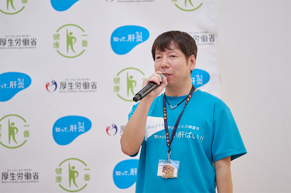 島谷氏は会場に集まったみなさまに「肝炎という病気について、自分には関係ないと思っていませんか?」と問いかけ、「肝臓が関係する病気と聞くと、“お酒を飲まないから大丈夫“や”若いから大丈夫”と思っている人が多いと思います。ですが、肝炎ウイルスは血液を介して感染するので、お酒や年齢は関係ありません。」と、肝炎ウイルスの感染は決して他人事ではないと話しました。