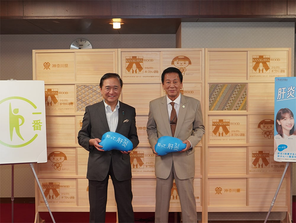 黒岩知事は、「大前提として肝炎にならないことが大事です。食、運動、社会参加を通して、肝炎にならないような生活をしていただきたいです。」と神奈川県が掲げている、『未病改善』の取り組みに基づいた生活を行うことの大切さを県民の皆様に呼びかけたうえで、「肝炎になってしまうこともあるため、なるべく早く検査を受けてもらうことが大事です。健康診断を定期的に受けていただいたり、問題が起きた時にはしっかり検査を受けていただき、早期治療を行っていただけるよう、肝炎対策を進めていきたいです」と県として、これからも積極的に肝炎対策に取り組んでいくことを伝えました。