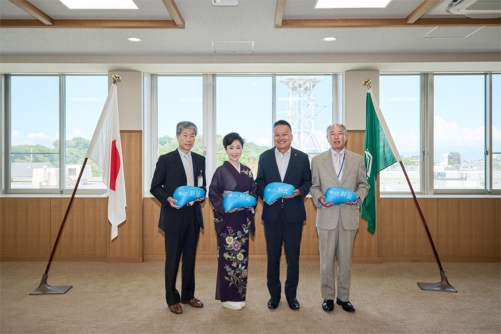 和田市長は伍代氏の話を受け、「検査を受けることや、もし自分がなってしまった時の対応など、知っておくことは重要だと感じました。認識不足なところもあるため、これを機にもっと肝炎について知り、啓発をしていきたいと思います。」と今後も肝炎対策に取り組んでいくことを伝えました。