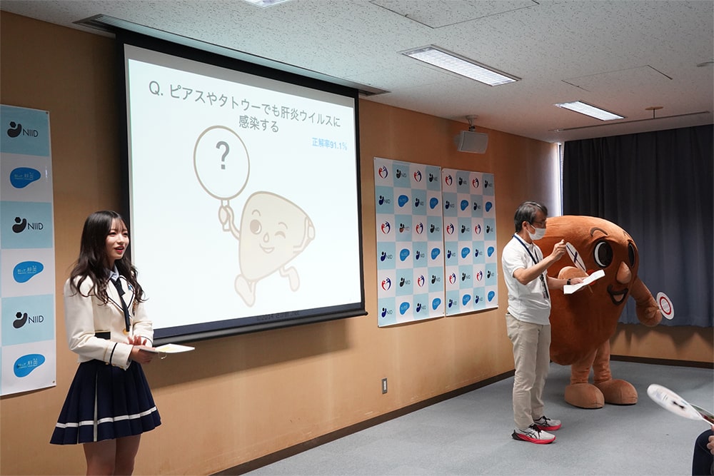 この度10月28日(土)に、国立感染症研究所戸山庁舎の一般公開にあわせて「知って、肝炎プロジェクト」肝炎クイズイベントが開催され、「知って、肝炎プロジェクト」スペシャルサポーターのNMB48の坂田心咲氏が出演しました。