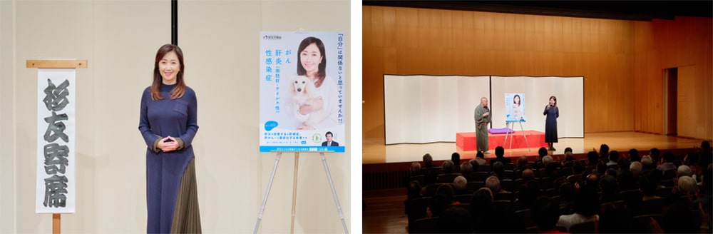 肝炎対策特別大使として登壇した伍代氏から令和5年度の「知って、肝炎ウイルス」啓発ポスターがお披露目されました。