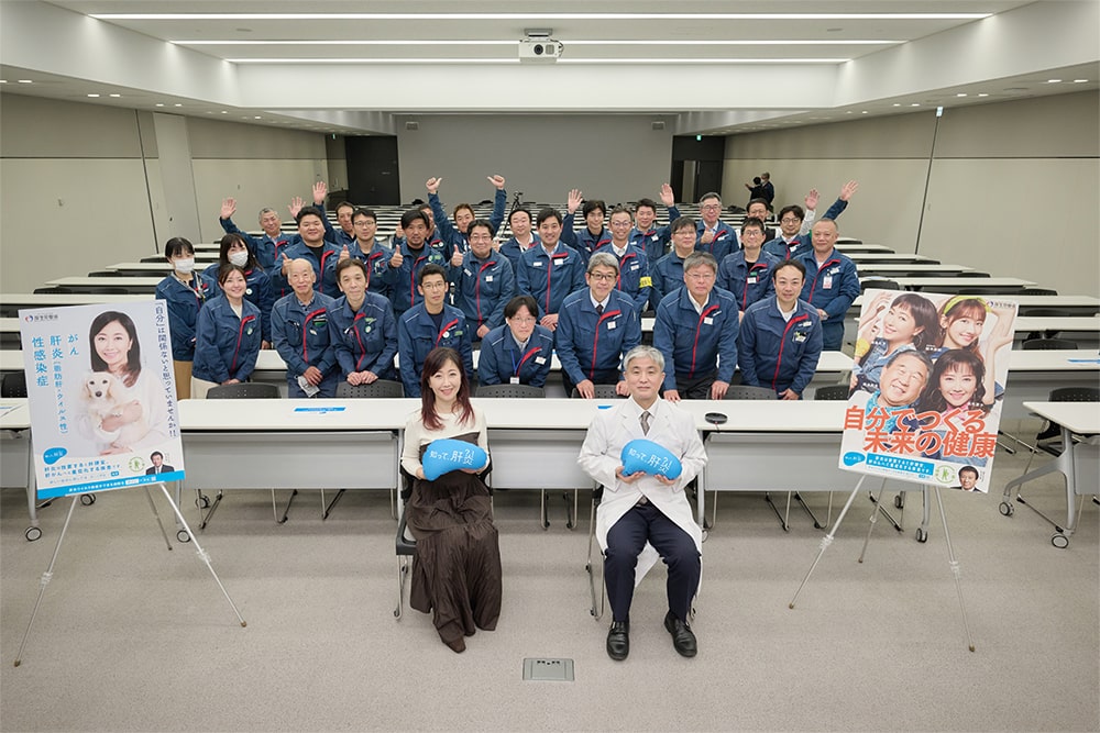 いすゞ自動車の岸下氏は、「ウイルス性肝炎は、自覚症状が無い状態でも肝炎ウイルス検査をすることが大切だということを聞き、健康施策として様々な取組を進めているところではありますが、これを機会に肝炎についても従業員に周知し、健康施策の取組をより一層進めていきたいと思います。」と話しました。