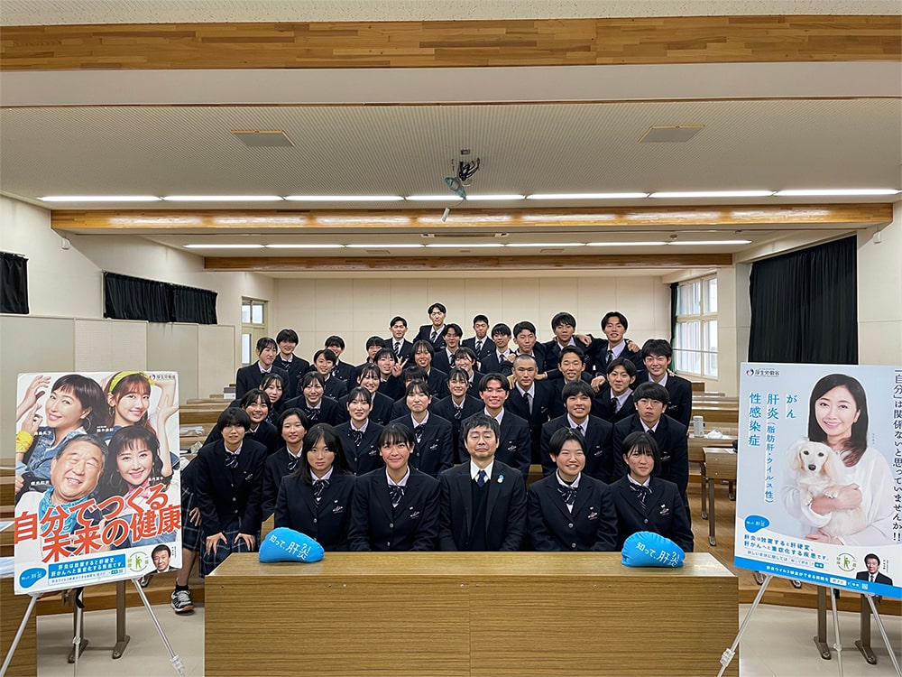 12月6日(水)に今期の積極的広報地域に選定されている岩手県での取り組みとして、同県花巻市の花巻東高等学校にて「知って、肝炎プロジェクト」の特別授業を実施いたしました。