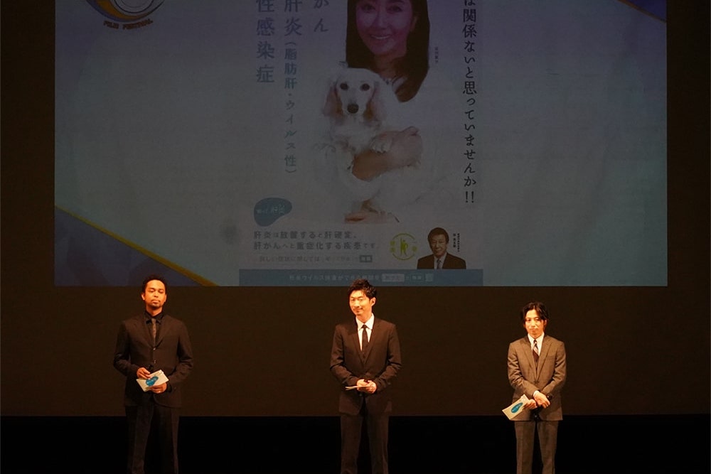 EXILE NESMITH氏が「肝炎が進行すると、“肝硬変(かんこうへん)”や“肝臓がん”といった、治療が難しく、命にもかかわる病気へと重症化してしまう怖い病気なんです。検査は1回の血液検査で簡単に結果がわかるんです。」と力強く呼び掛けていました。