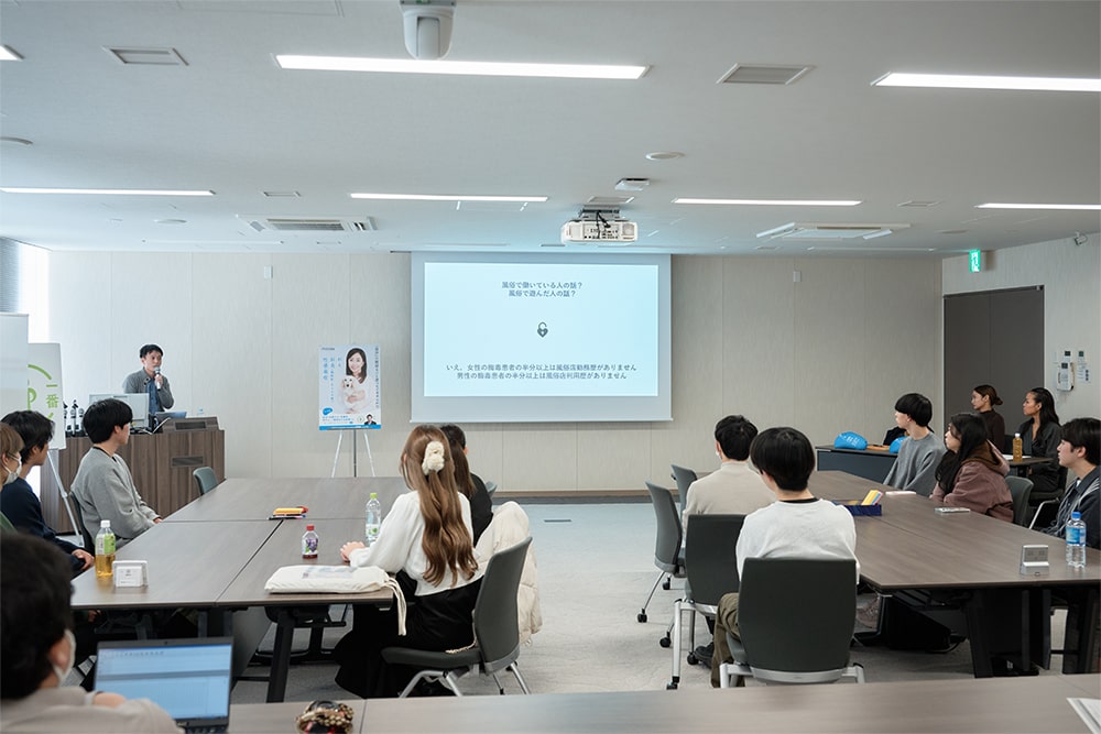 12月19日(火)にその一環として、統計が始まって以来、患者報告者数が過去最高を更新し続け社会問題になっている「梅毒」の感染拡大問題について、桜美林大学の学生と「個人で出来る事」「社会で出来る事」をディスカッションいたしました。