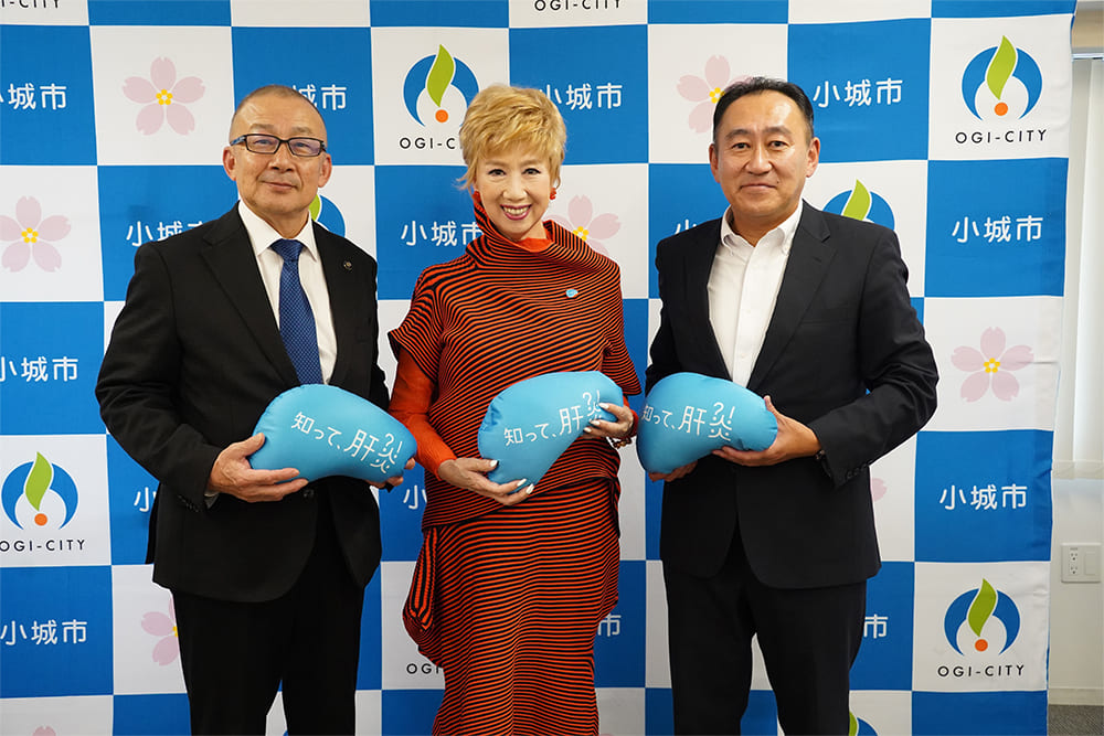 トークイベント終了後は場所を変え、瀬川氏、小城市長、江口先生の3名で小城市訪問が行われました。それぞれが一言ずつ挨拶を終えたあと、瀬川氏からどうしてもこれだけは皆さんに伝えておきたいという話がありました。それは、「私の母と姉は肝炎ウイルスのキャリアだったこともあり、肝炎はとても他人事とは思えません。早期発見、早期治療のためにも肝炎ウイルス検査を受けてほしいです。ぜひご家族にも勧めてください」というお言葉でした。実体験をもとに話す話はとても説得力があり、同時に瀬川氏の思いがとても伝わってきます。ひとりでも多くの方に肝炎ウイルス検査を受けていただけるように、これからも私たち「知って、肝炎プロジェクト」は、大使、スペシャルサポーターの皆さんとともに発信し続けたいと思います。