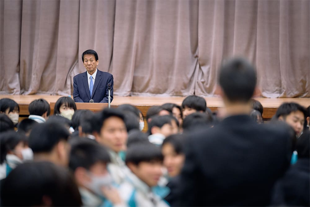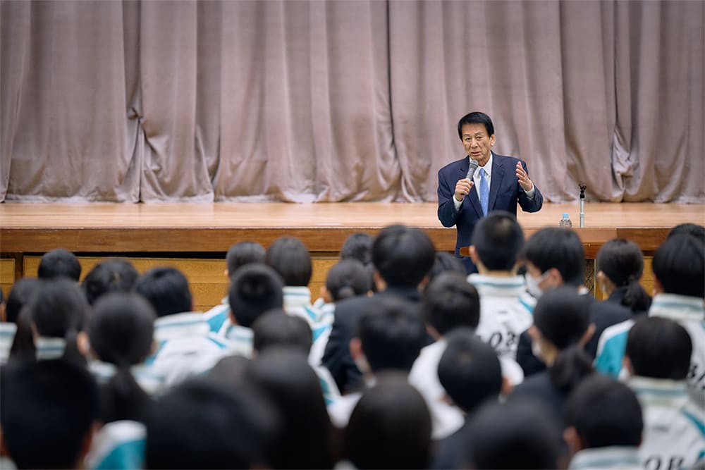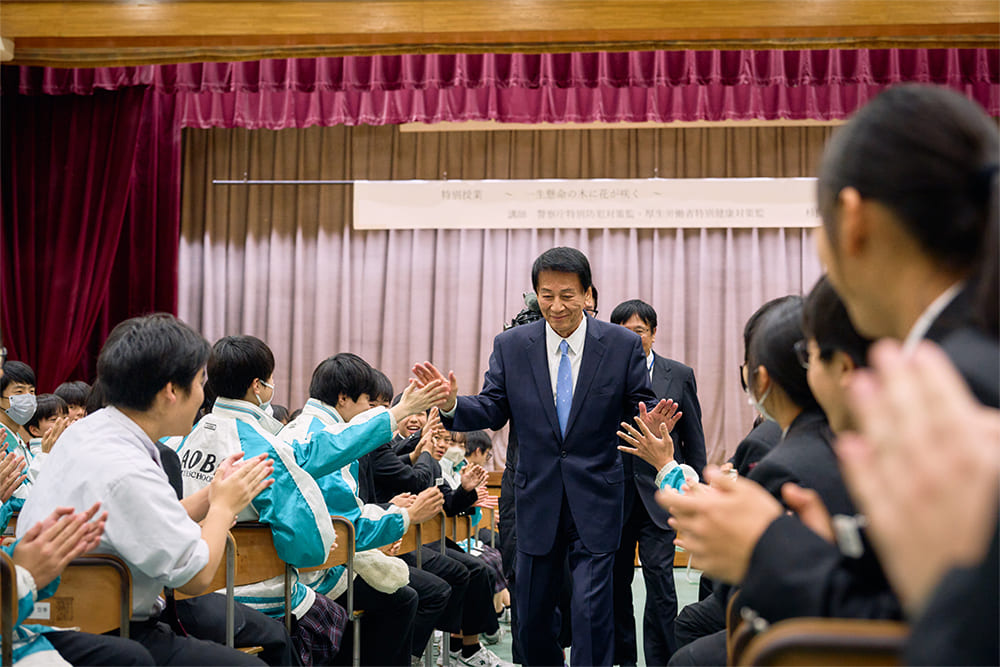 2024年12月19日(木)茨城県の茨城町立青葉中学校にて、厚生労働省特別健康対策監の杉良太郎氏による全校生徒248名と地域関係者を対象とした「特別授業 ~一生懸命の木に花が咲く~」が開催されました。