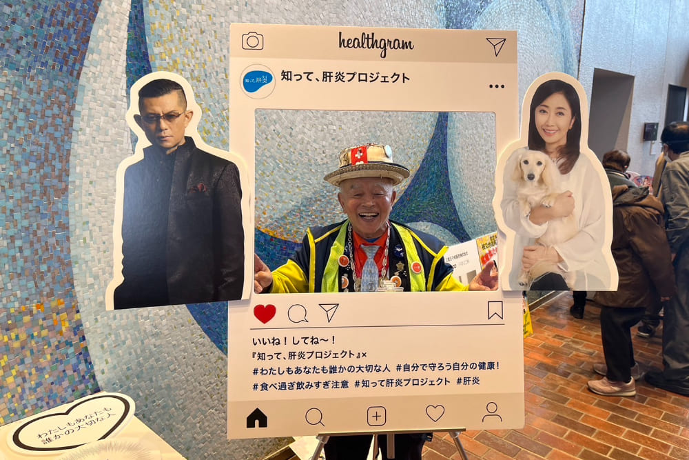 会場のロビーでは、伍代氏、的場氏の写真が入ったフォトパネルを設置し、多くの来場客が「健康」メッセージが書かれたパネルを持って撮影をされていました。