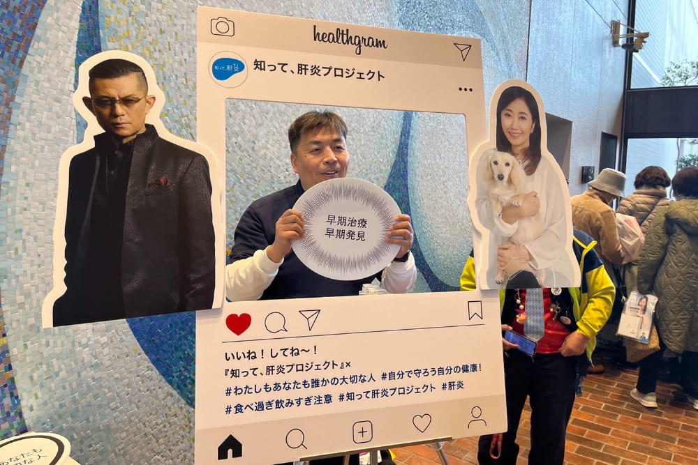 伍代氏は、自身の約1年半に渡るC型肝炎の治療経験談の中で「当時の治療薬は副作用が強くて身体も心もつらかった。今は症状が悪化する前であれば飲み薬で治療ができるようになりました。だから皆さん早期発見・早期治療が大切なんです」と語りました。