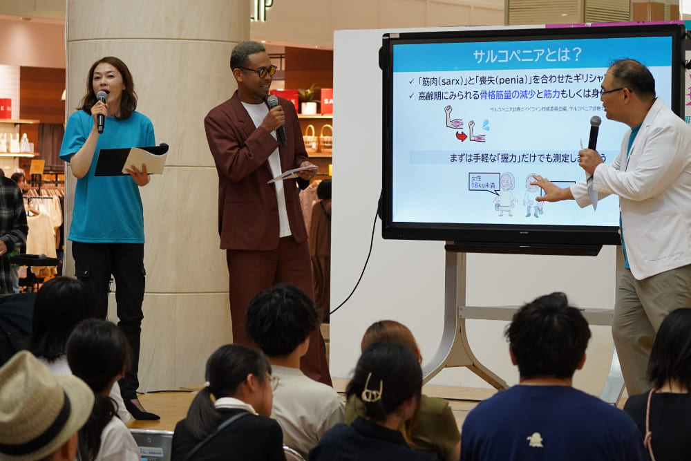 EXILE NESMITH氏は、「近年、加齢に伴う筋肉量や筋力の低下、そして身体機能の衰えを特徴とする“サルコペニア”が1つの病名として確立されています。健康で長生きするためには全身の“筋肉”がとても重要です。」と伝えました。さらに、「肝臓と筋肉には深い関係があり、肝機能が低下すると筋肉は萎縮してしまいます。一方で肝機能が改善すると、筋肉の発達が見られることから、肝臓の健康が全身の健康に深く関わっていることがわかってきています。」と続けました。