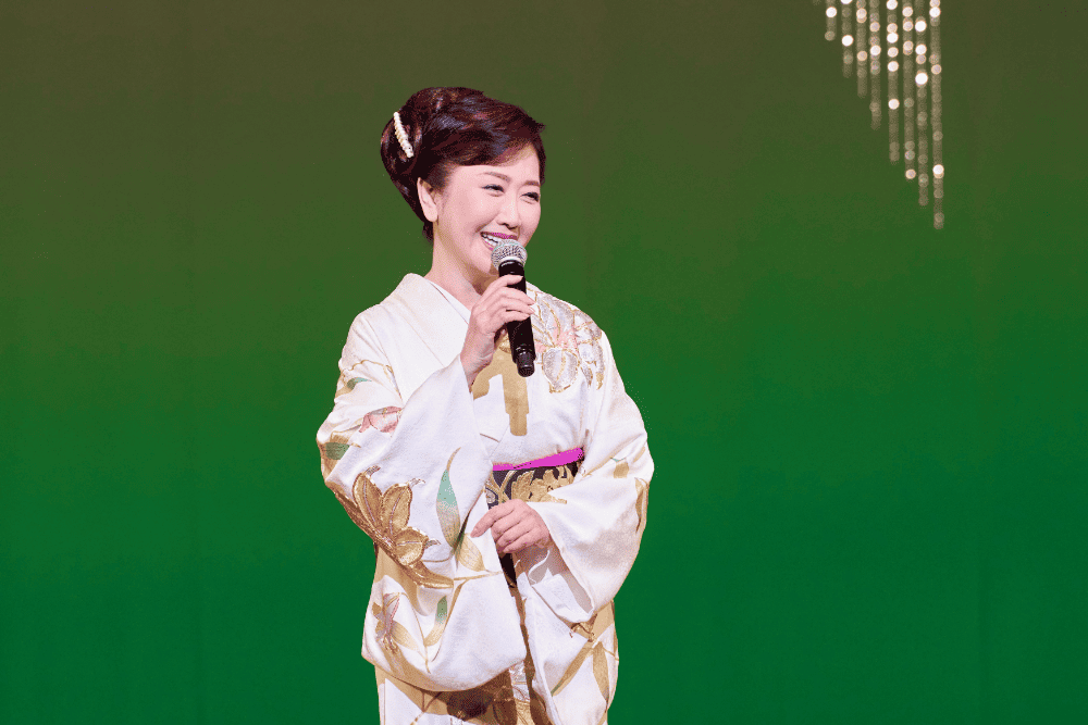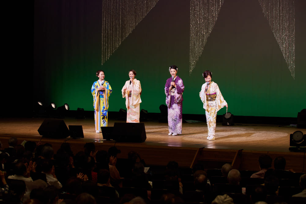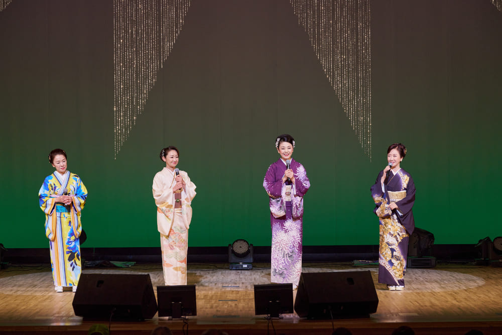 オープニングのあとは、岩本公水氏、大石まどか氏、多岐川舞子氏、伍代夏子氏がそれぞれ自身の代表曲を披露。馴染みのあるメロディに、観客は手拍子を合わせたり、一緒に口ずさんだりと、会場が一体となる温かいステージが続きました。