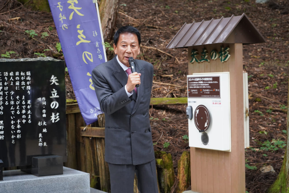 2025年10月3日(金)に、厚生労働省 特別健康対策監 杉良太郎氏、「知って、肝炎プロジェクト」肝炎対策特別大使 伍代夏子氏らが、山梨県大月市で開催された「矢立の杉」第14回年次大祭に出席しました。