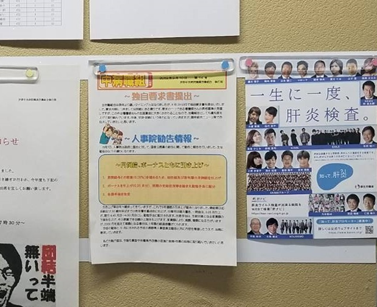 また、掲示板にチラシを貼付して、全組合員へ向けて肝炎検査を広報しました。